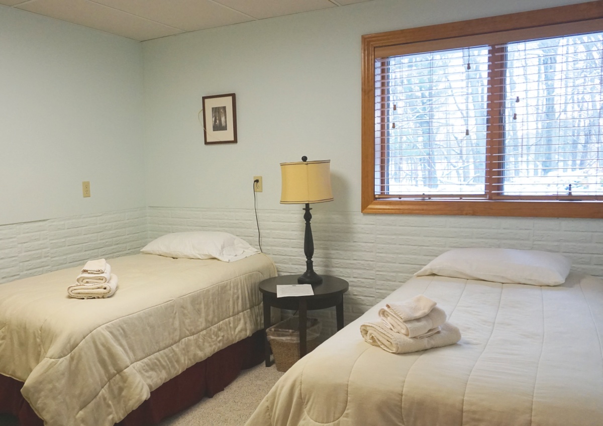 Spanning 230 acres, our property offers ample opportunities for outdoor activities to balance your indoor meeting or event. Guests will have access to wooded trails and an outdoor patio with seating and a bonfire pit available upon request. An outdoor rosary and stations of the cross support further spiritual reflection.